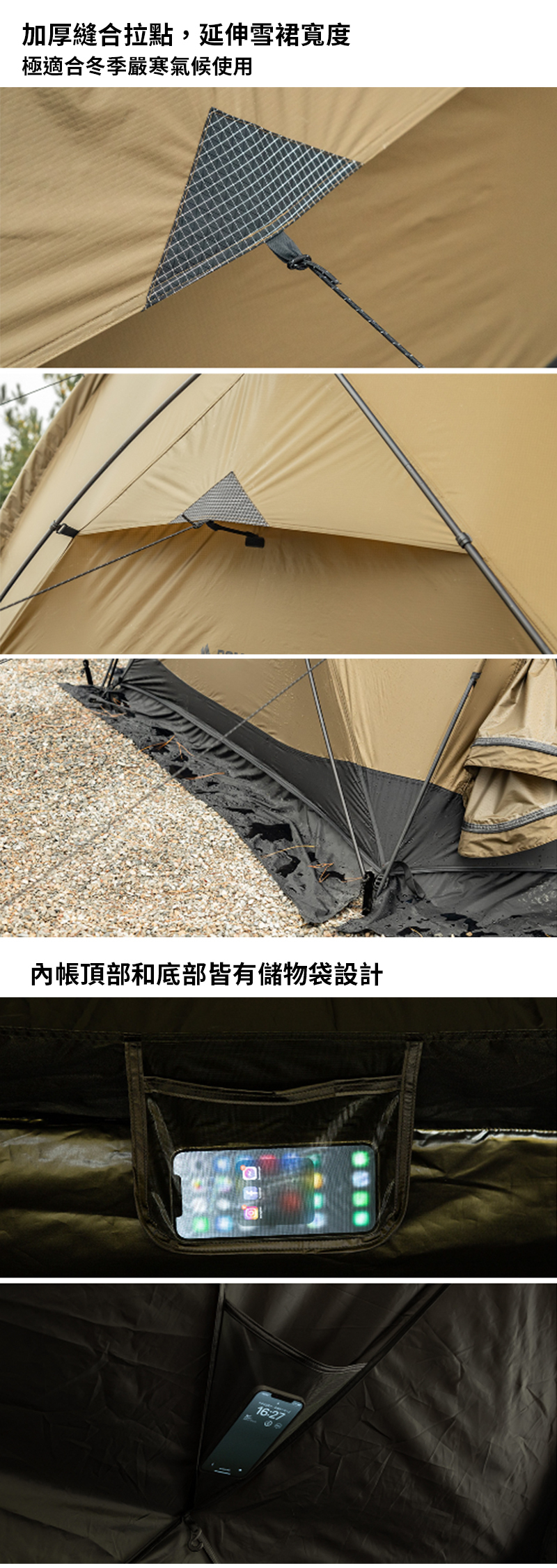 清除污垢—請用軟毛刷清潔帳篷表面,包括雪裙、地墊、內帳。