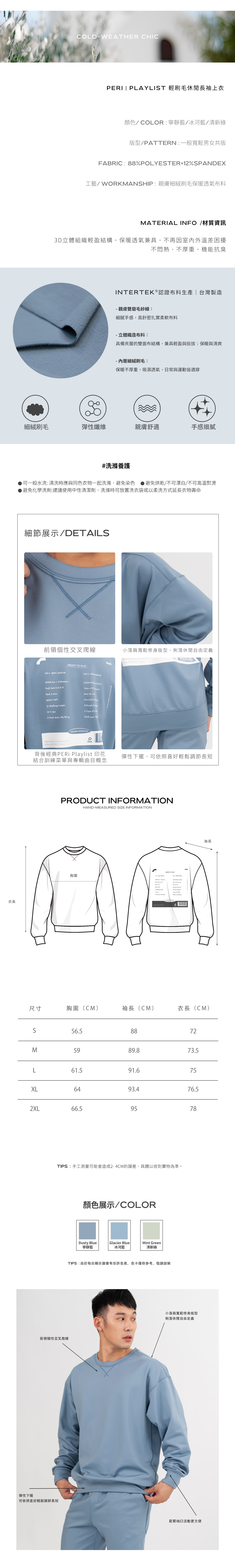 親膚細絨刷毛保暖透氣布料,微落肩寬鬆修身經典款
