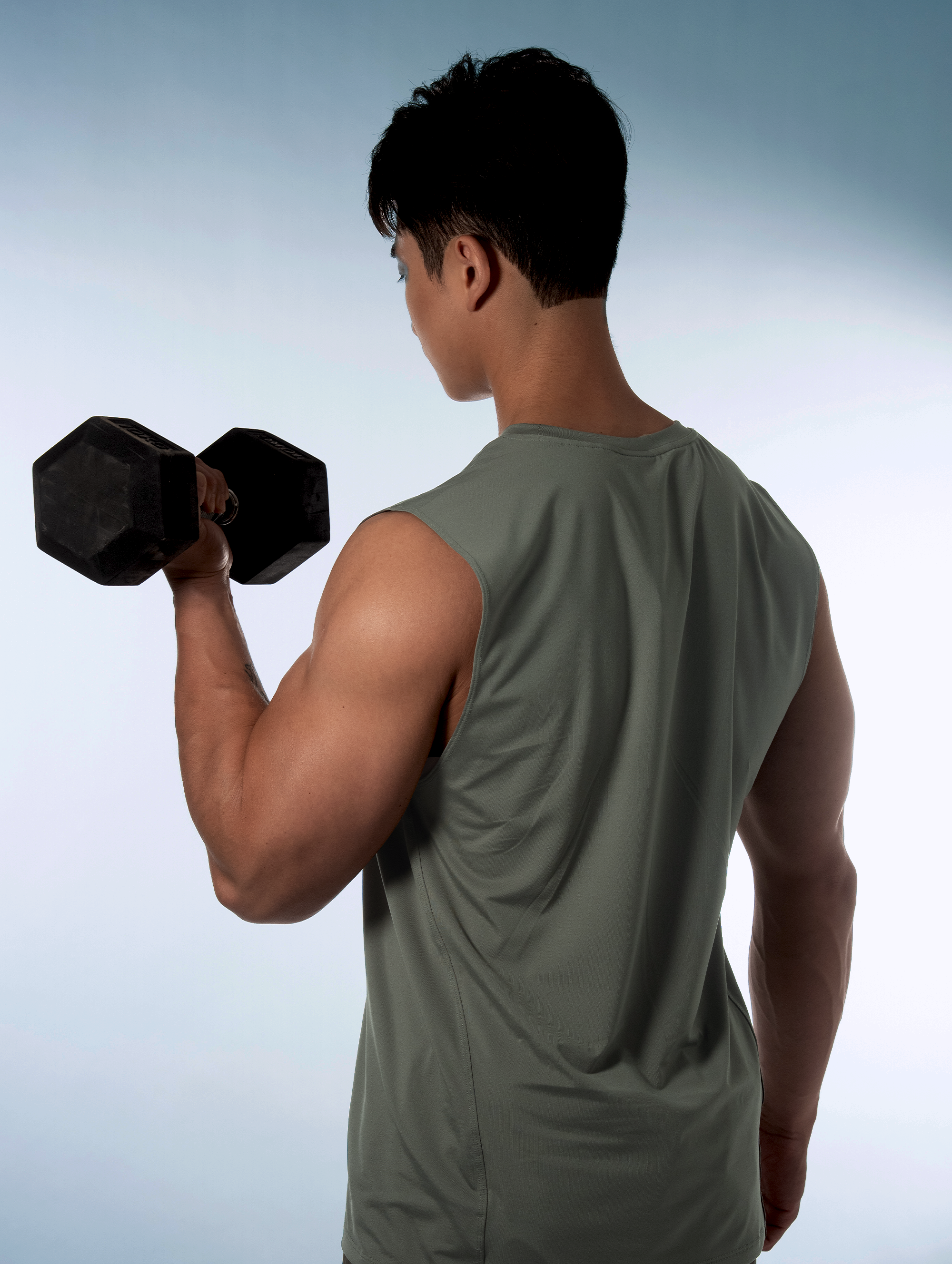 寬肩版型,搭配後背V型剪接及挖低袖籠剪裁