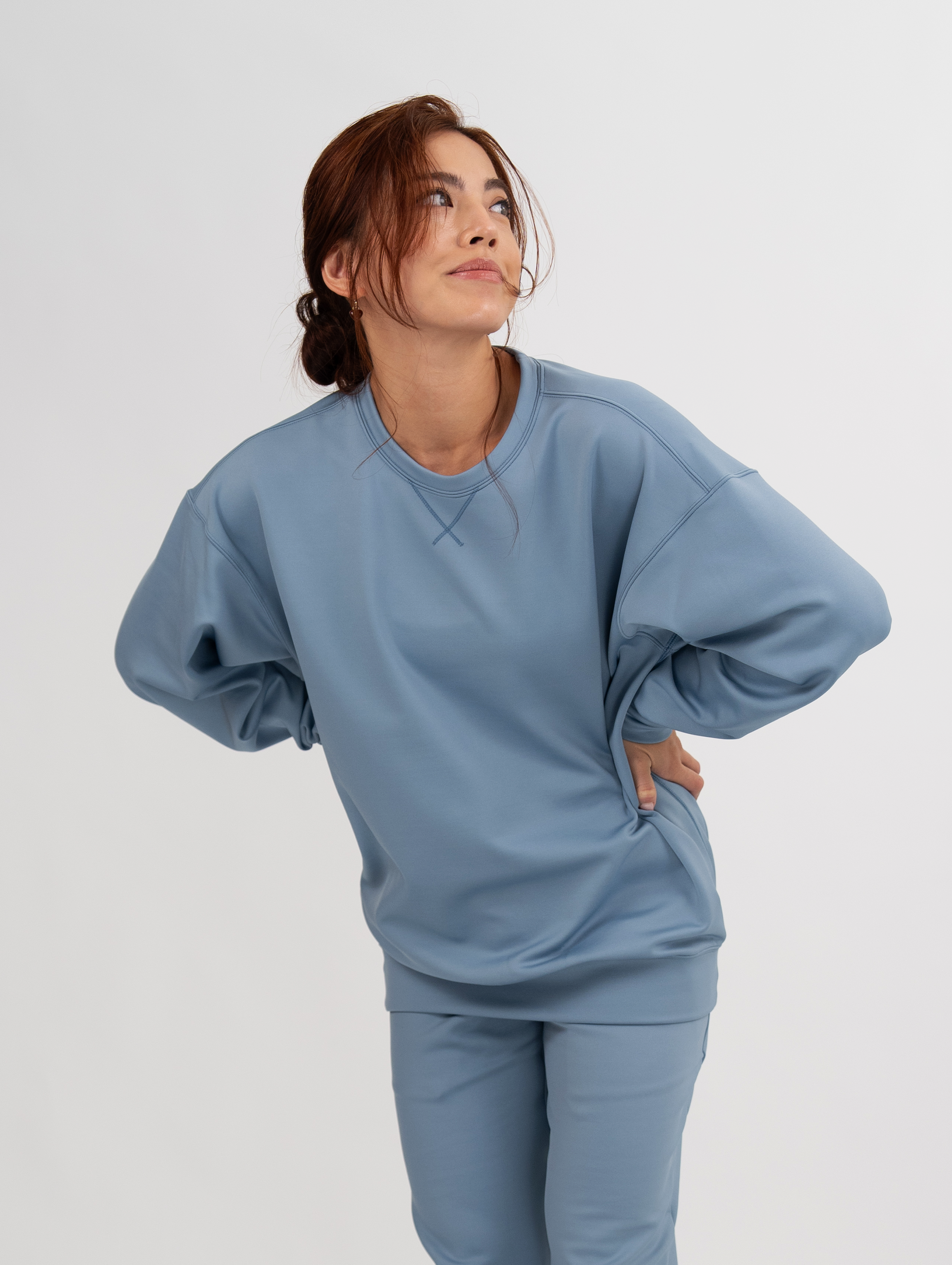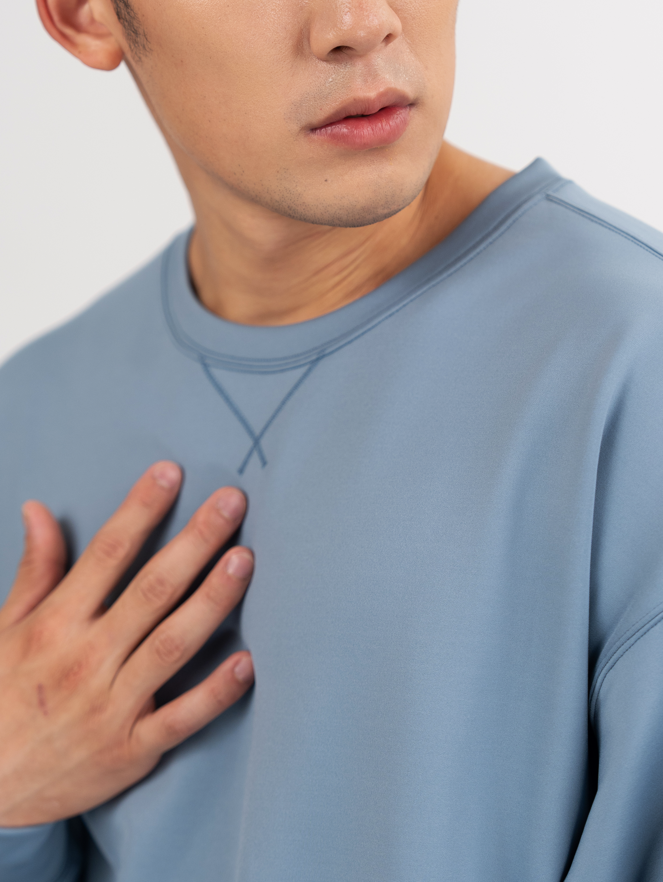 親膚細絨刷毛保暖透氣布料,微落肩寬鬆修身經典款