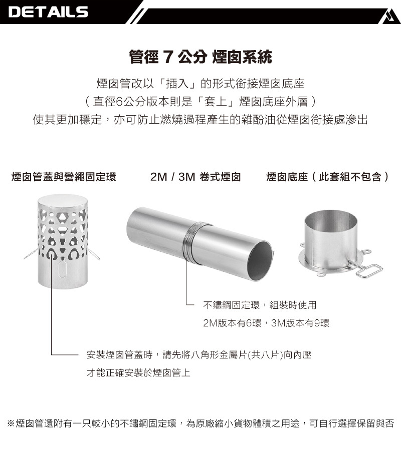 此商品為 3M捲式煙囪、煙囪頂蓋、營繩固定環 的組合(不包含煙囪底座)