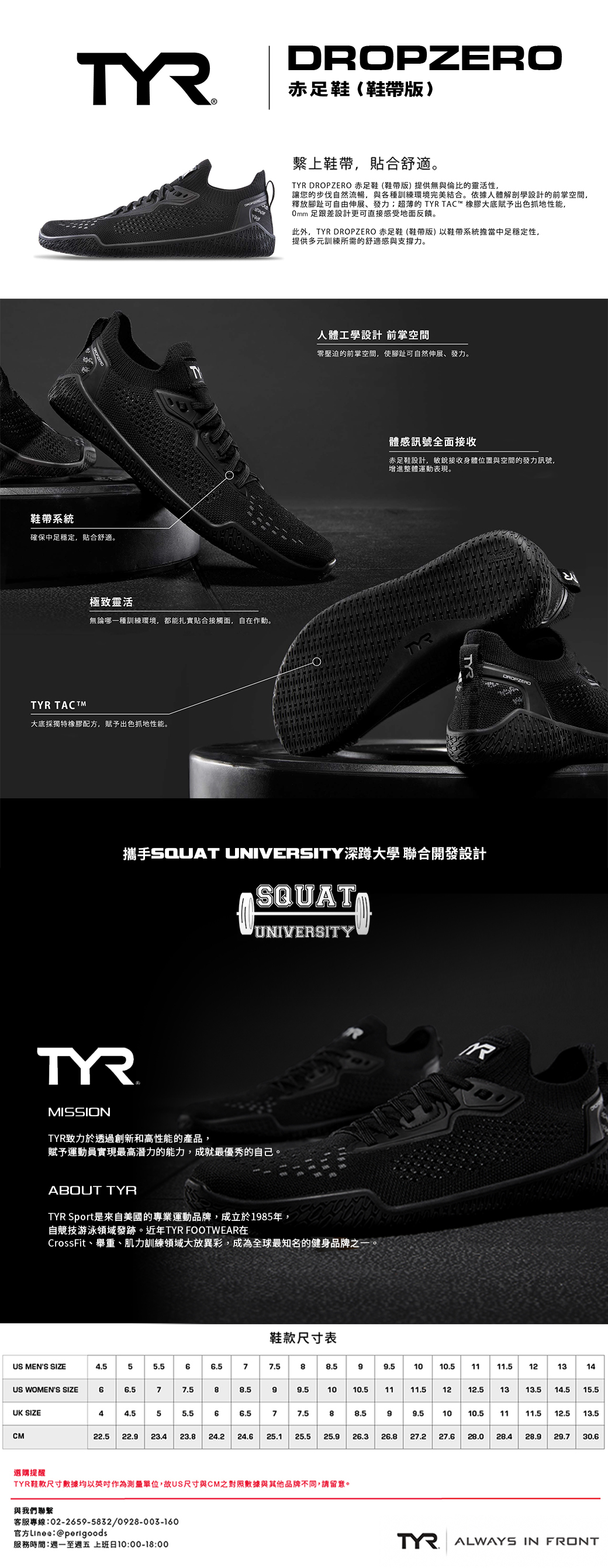 TYR|DROPZERO 赤足鞋 (鞋帶版) 001 黑