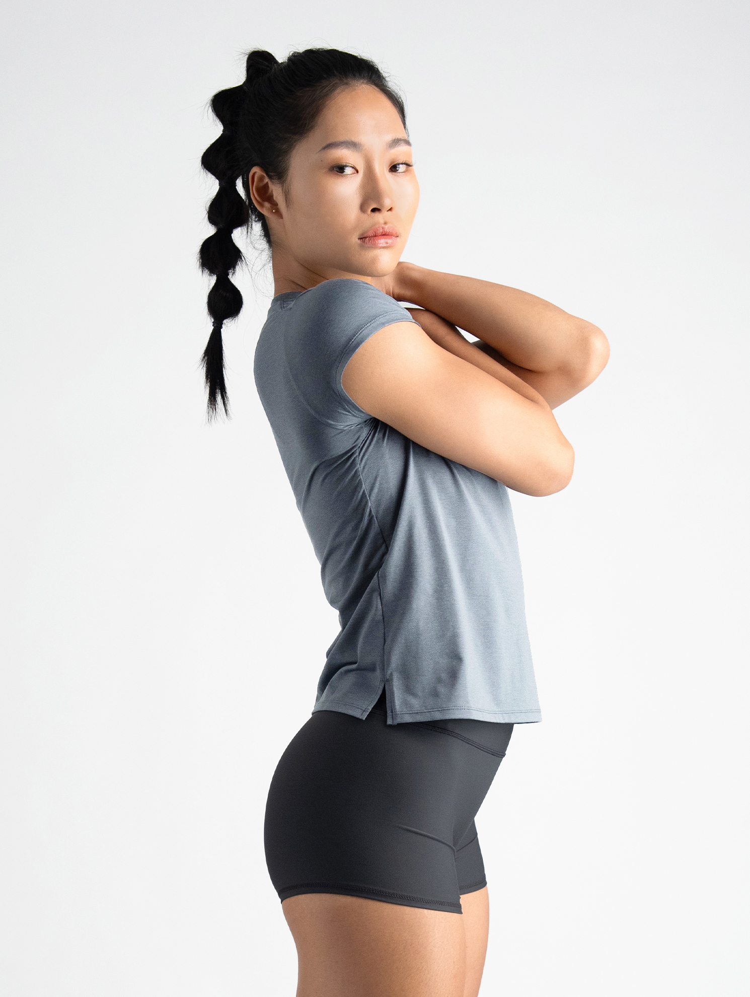 PERi|女版麻花短袖上衣 - 霧灰藍