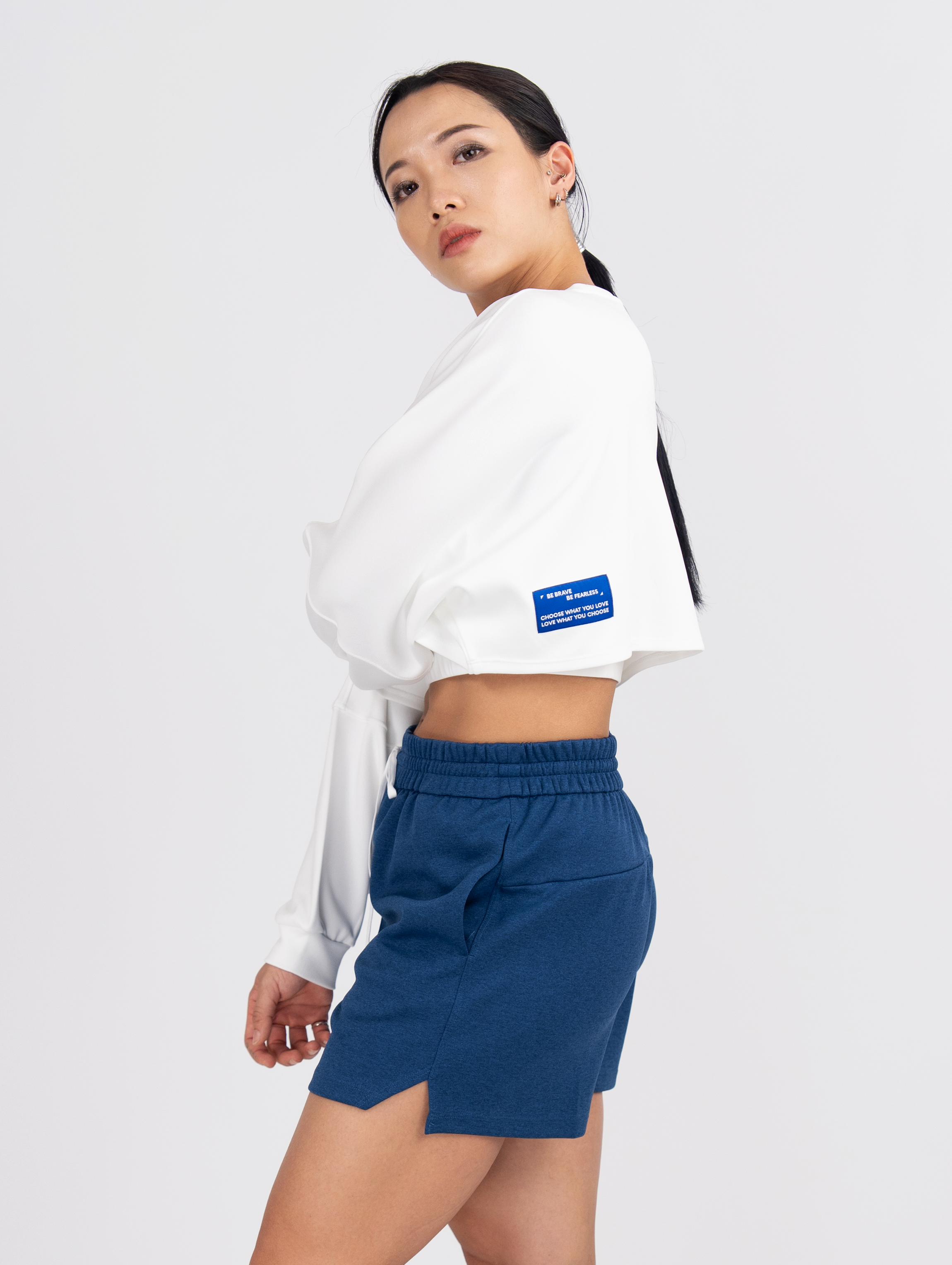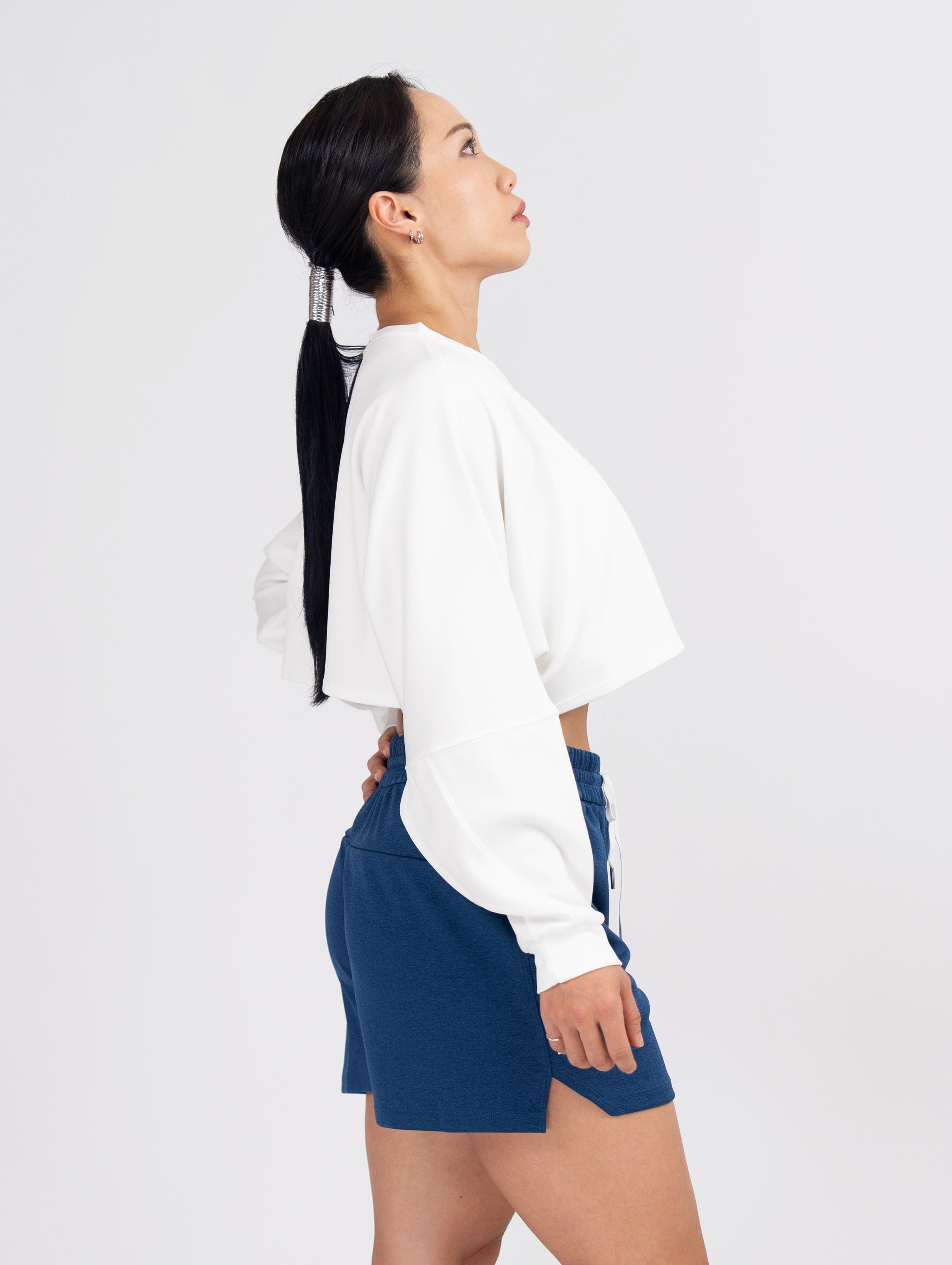 及腰寬鬆率性設計,大落肩搭配層次感泡袖,