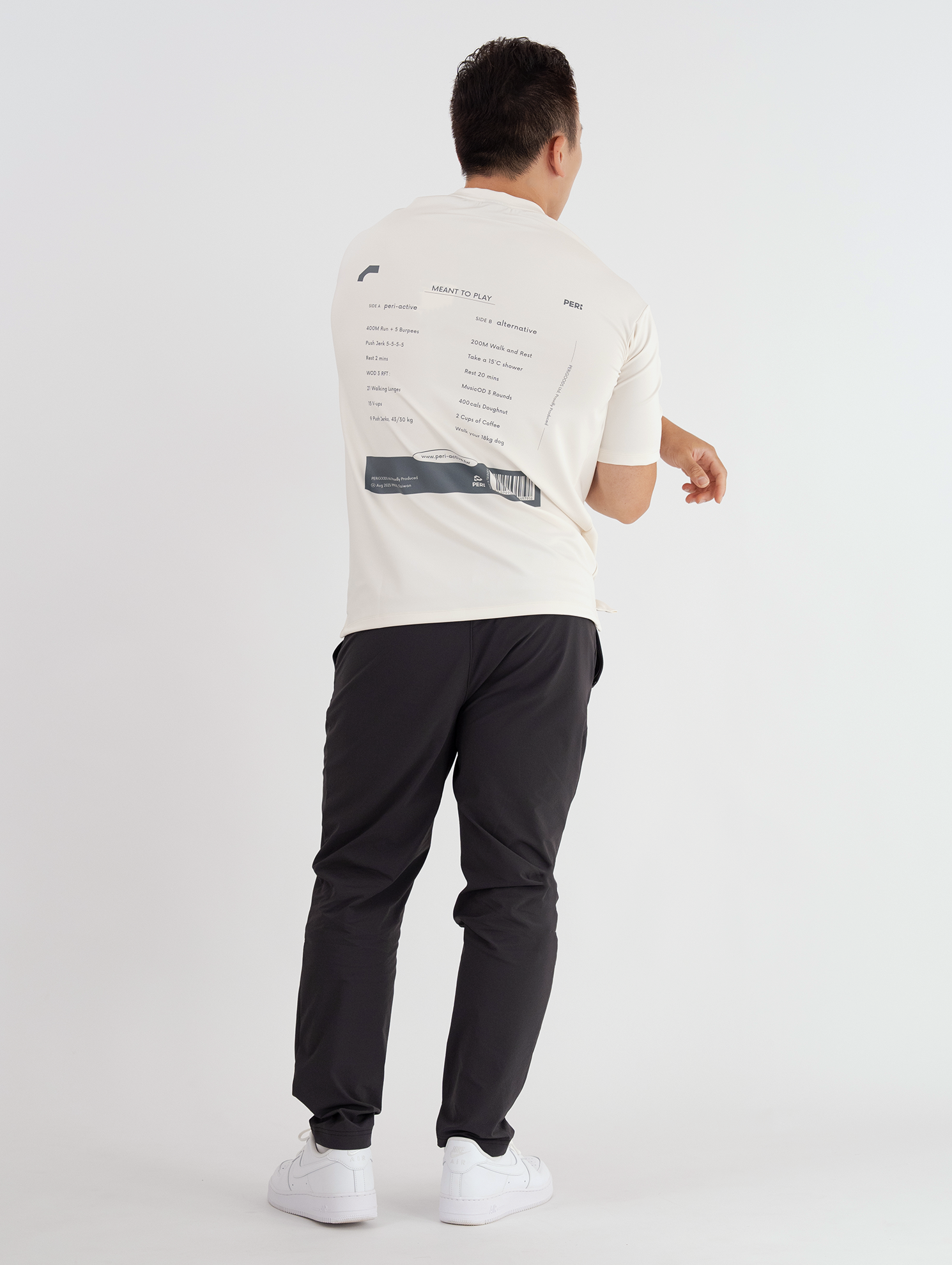 前胸Meant to play刺繡,背後印花以訓練菜單及專輯曲目為發想設計,