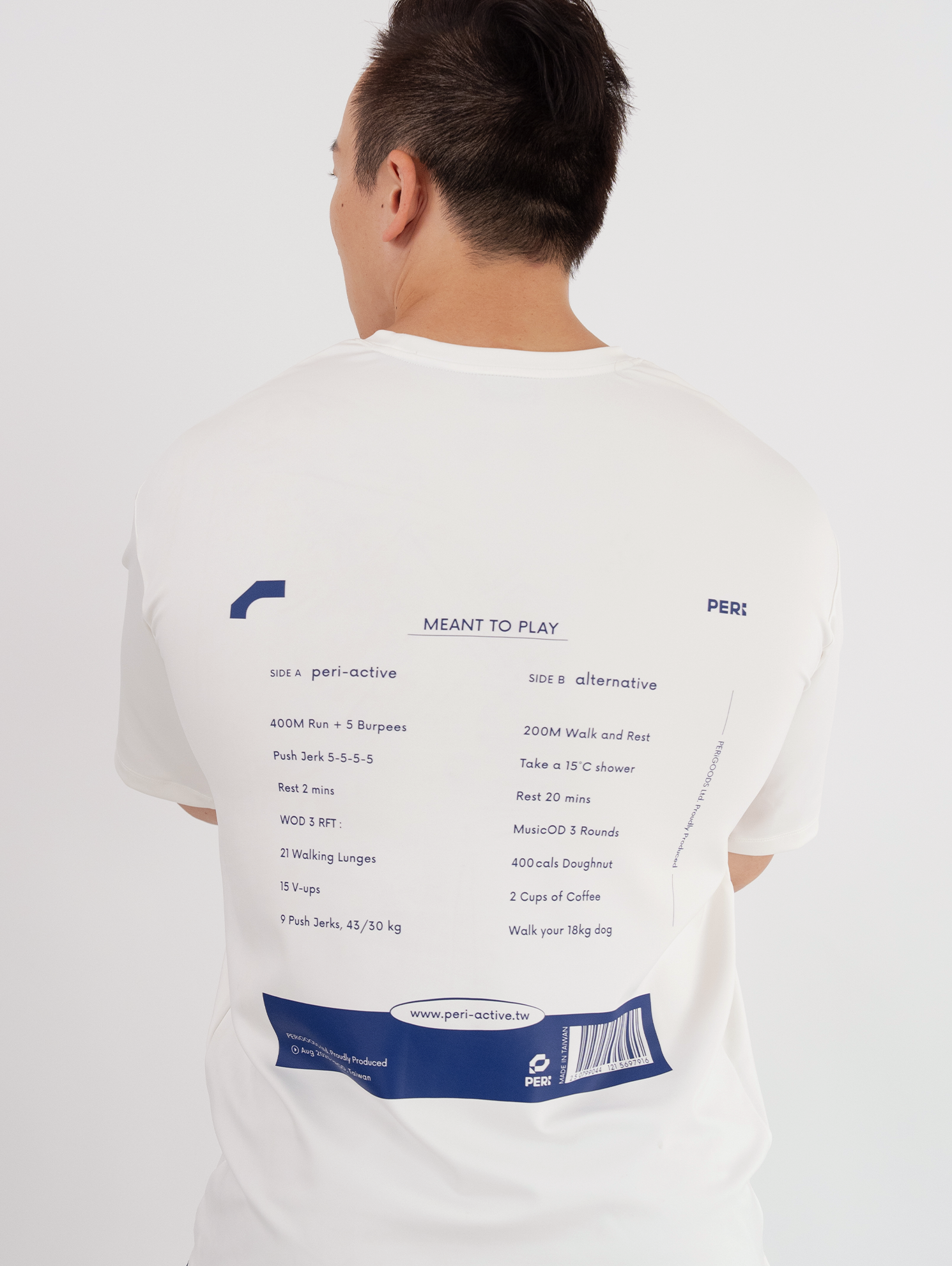 前胸Meant to play刺繡,背後印花以訓練菜單及專輯曲目為發想設計,