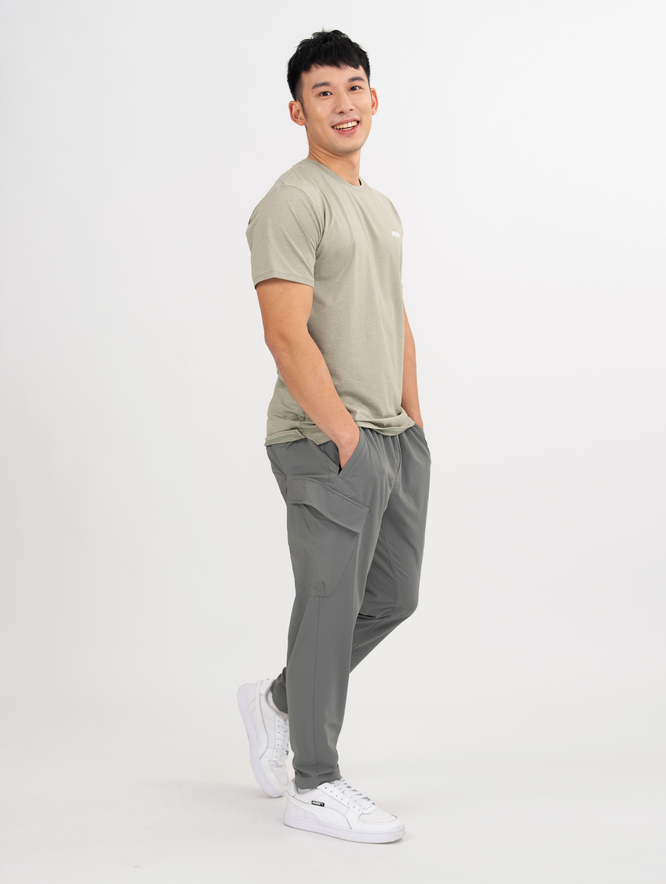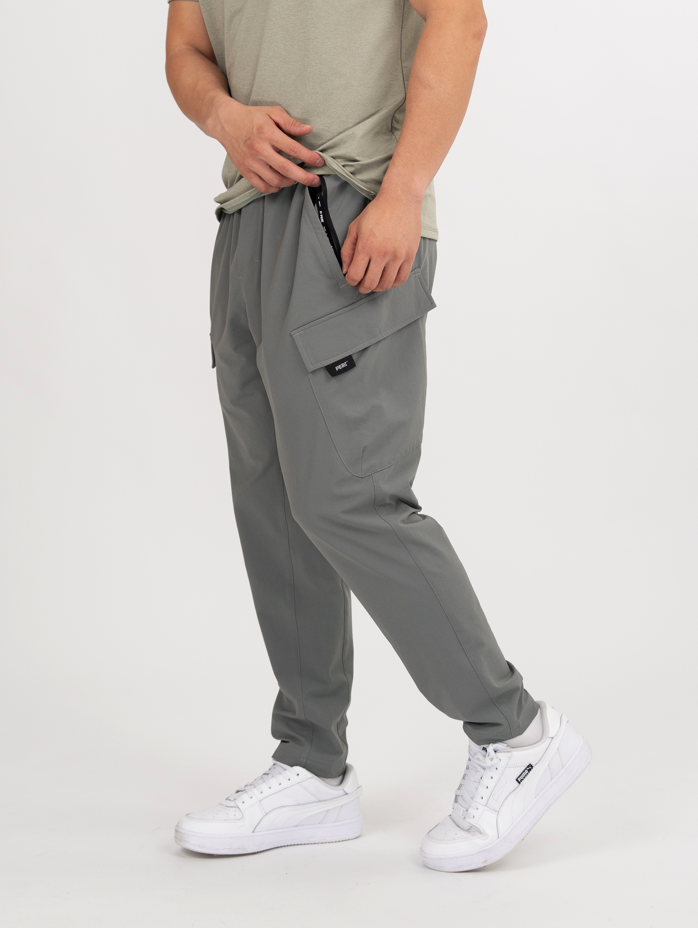 PERi|Utility 抽繩修身工裝長褲 -尤加綠