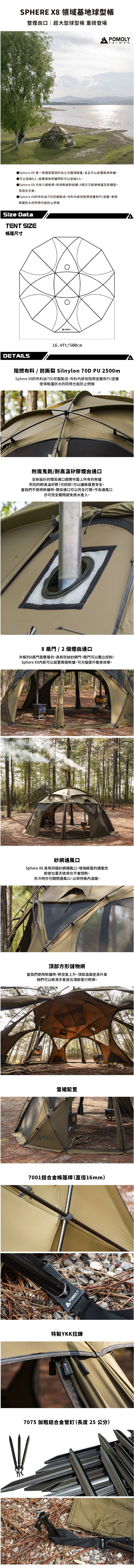 外帳:70D抗撕裂矽尼龍、PU塗層、阻燃