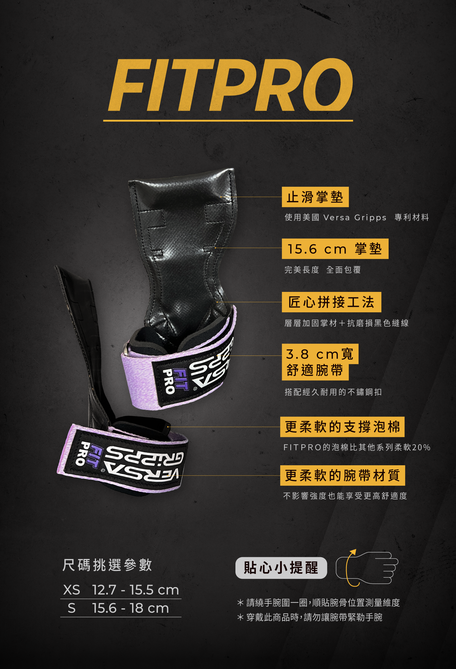 1. VG FITPRO拉力帶的專利護掌墊,在各尺寸的FITPRO拉力帶都是相同的大小裁切。